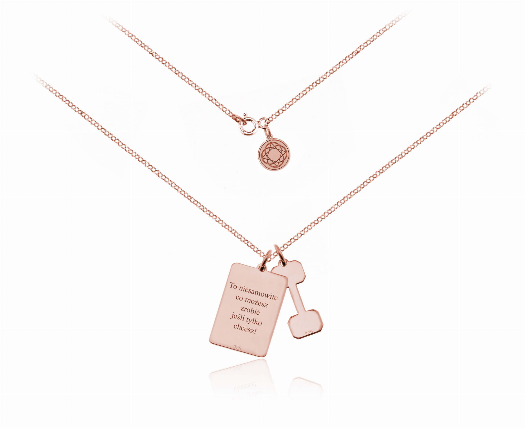 Srebrny naszyjnik Move medalion i hantel - Rose Gold - grawer