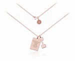 Naszyjnik wykonany jest ze srebra pr. 925 dodatkowo uszlachetnionego różowym złotem. Do wyboru jest kilka długości łańcuszka. Wymiary prostokątnej zawieszki to ok. 1,1 x 1,6 cm