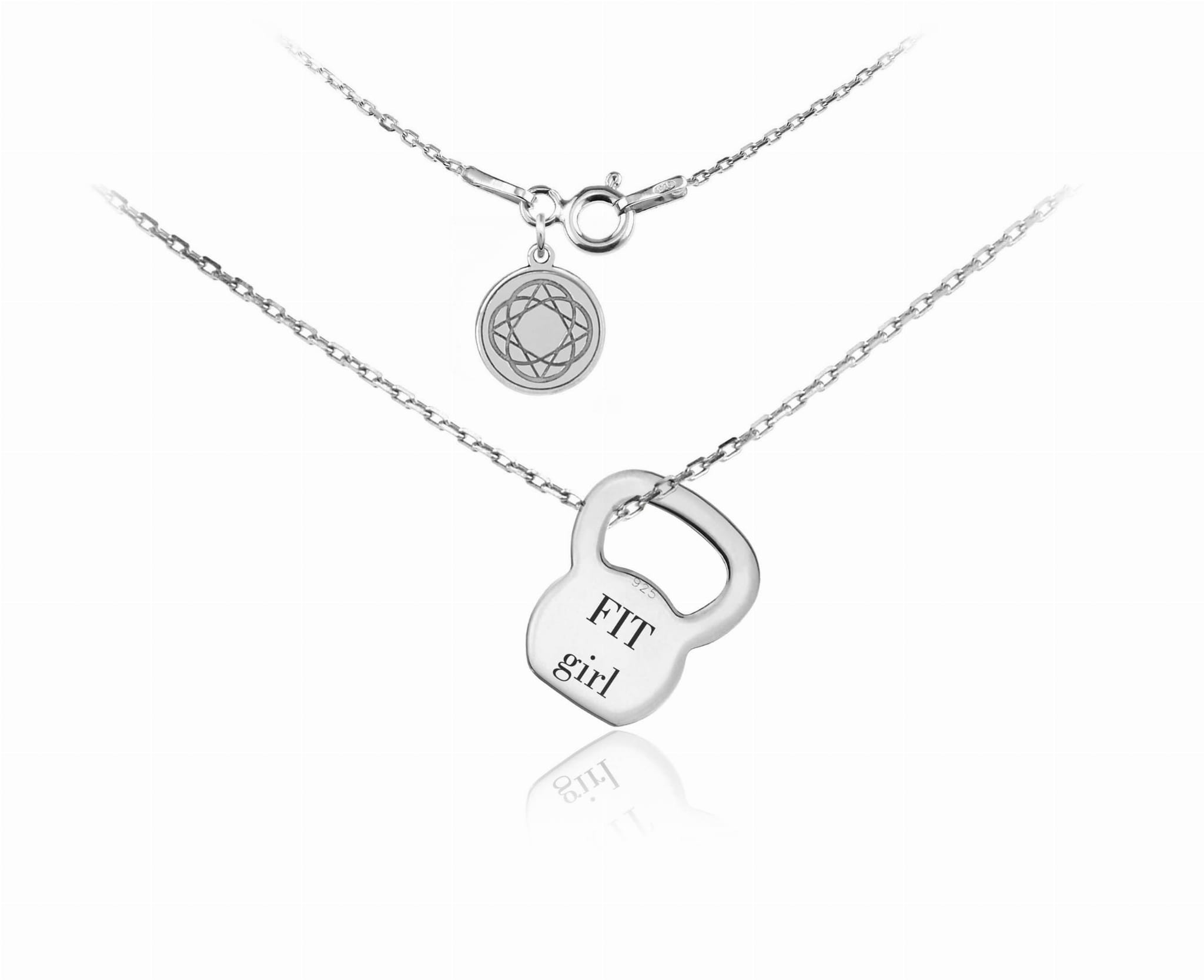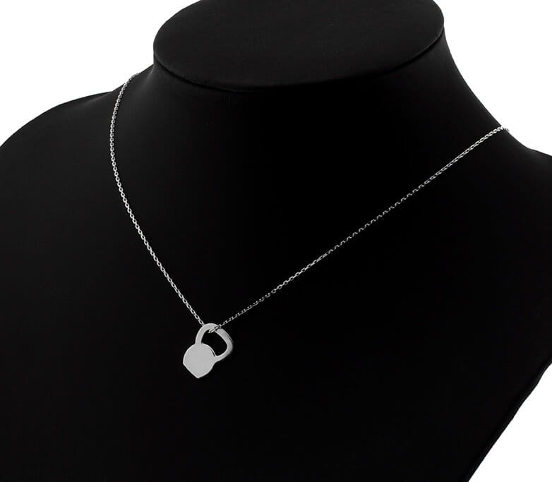 Naszyjnik wykonany jest ze srebra pr. 925. Do wyboru są dwie długości łańcuszka. Wymiary zawieszki kettelbell to ok. 1,5 x 1,2 cm.
