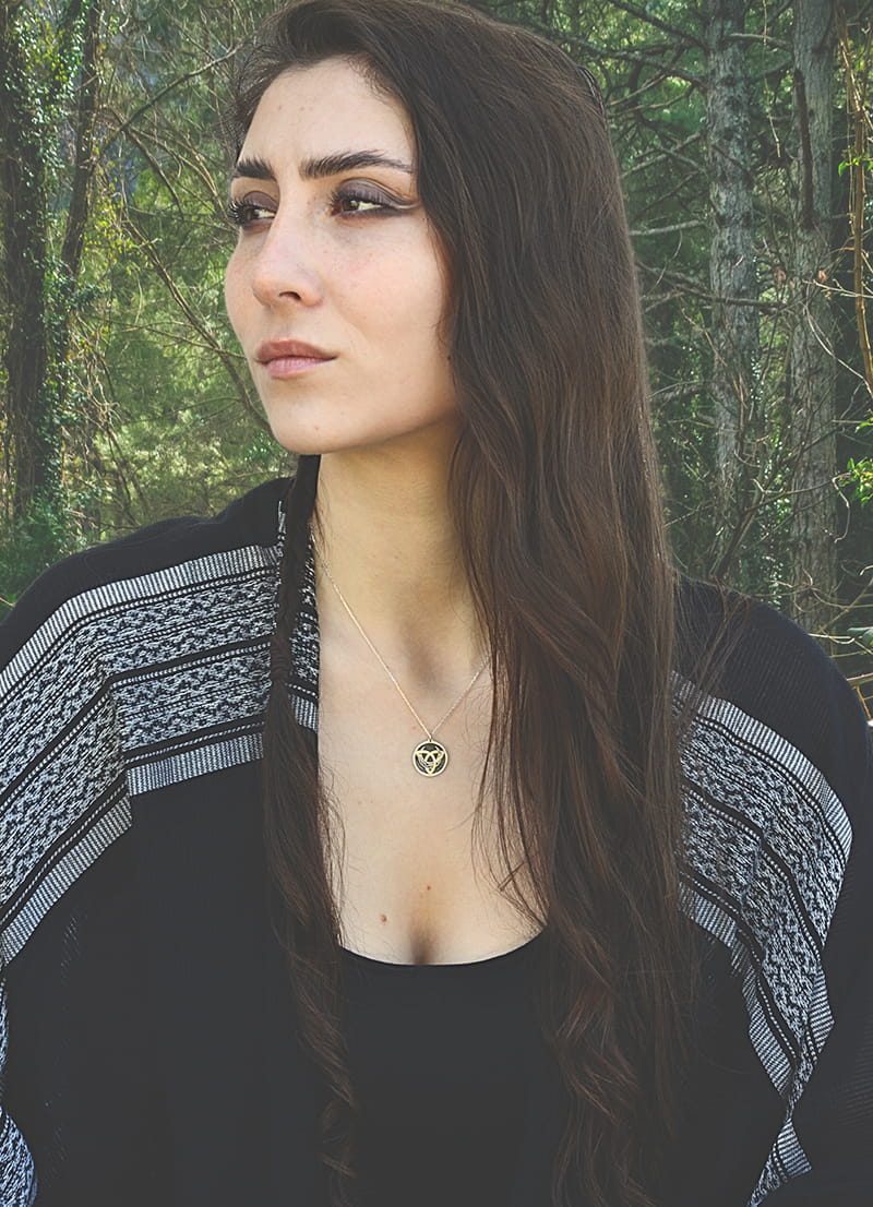 Naszyjnik z motywem węzła i księżyca, zaprojektowany i wykonany w naszej pracowni.
