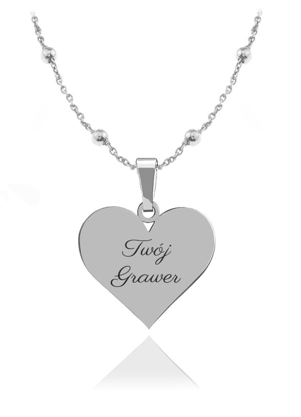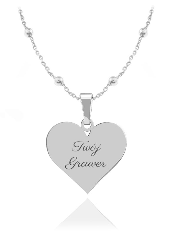 Srebrny naszyjnik Serduszko Łańcuszek Kulki Grawer