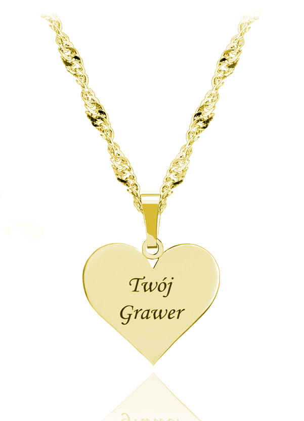 Srebrny naszyjnik Serduszko Łańcuszek Singapore Grawer 24k złocenie