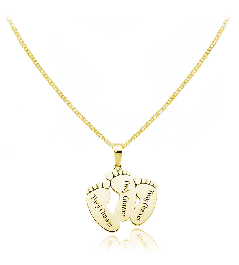 Srebrny naszyjnik Trzy Stópki z Grawerem - 24k złocenie