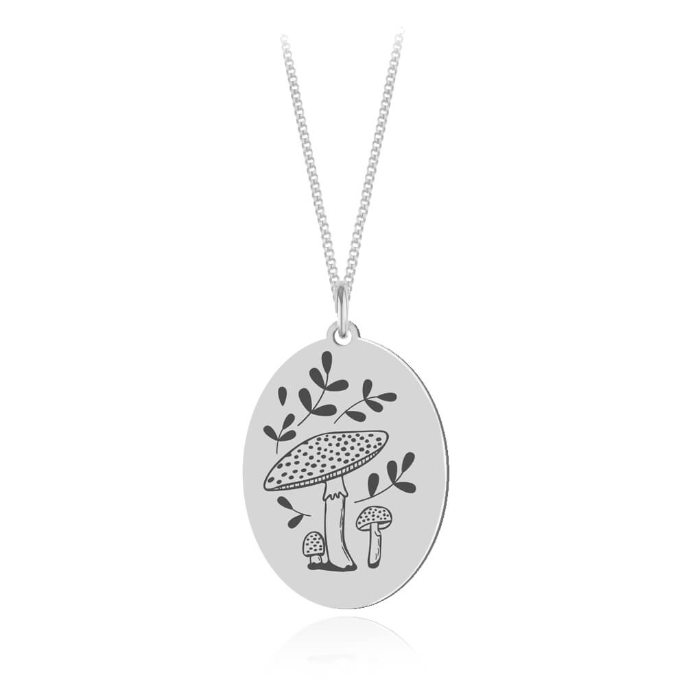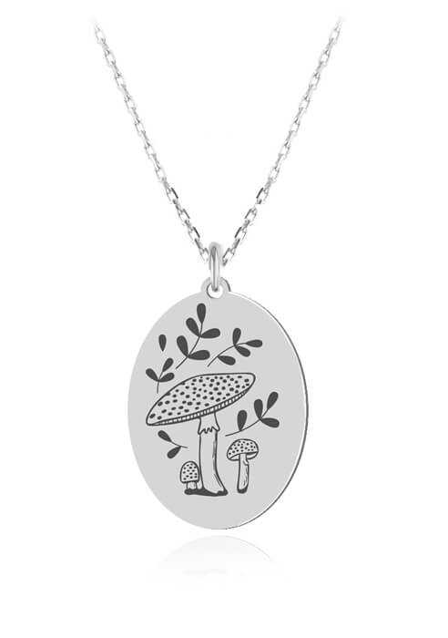 Srebrny naszyjnik - Welma - Muchomory i liście - Grawer