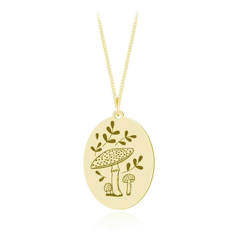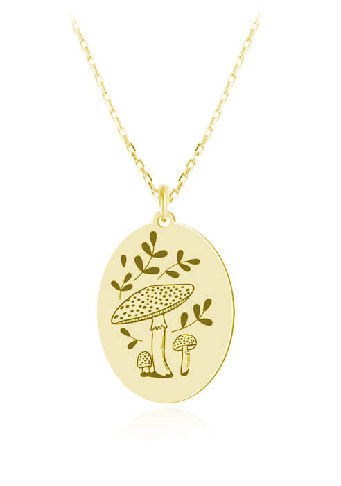 Srebrny naszyjnik - Welma - Muchomory i liście - Grawer - 24k złocenie