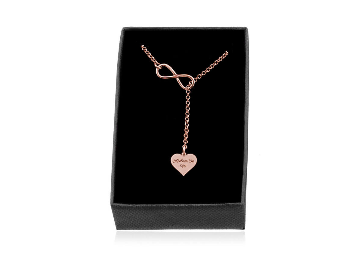 Srebrny naszyjnik przekładany Nieskończoność i Serce - Rose Gold - grawer