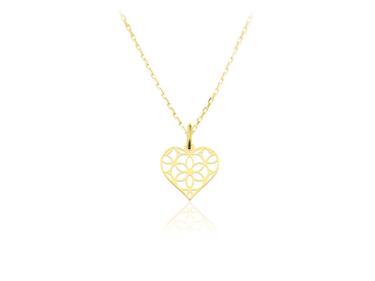Srebrny naszyjnik z ażurowym sercem - 24k złocenie