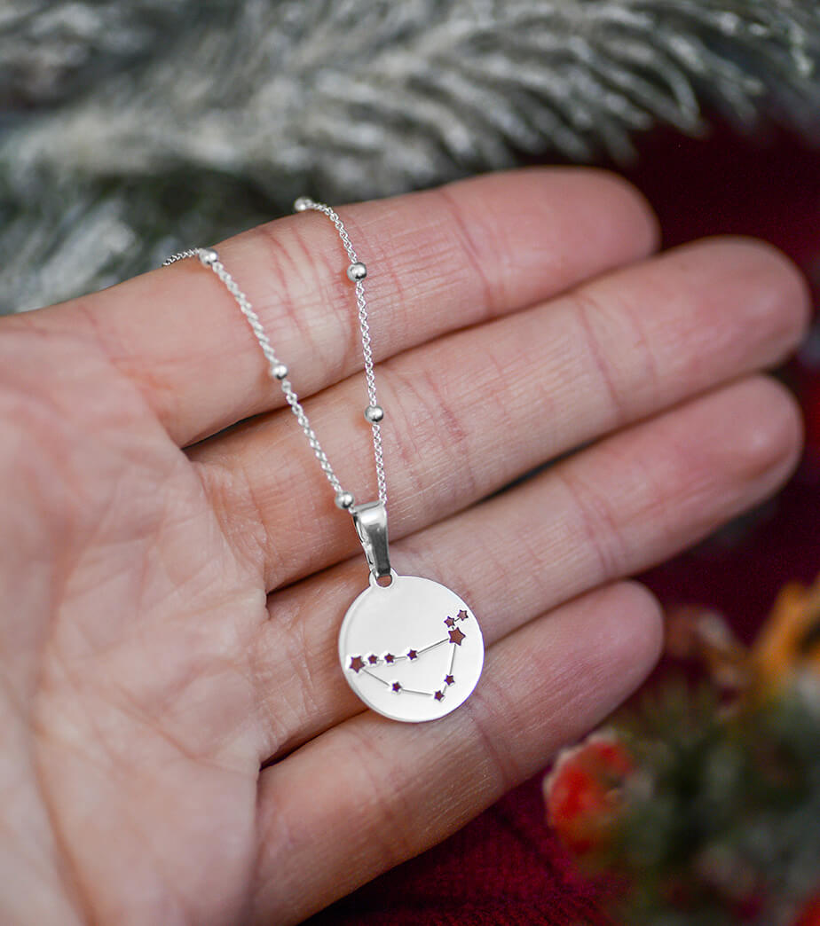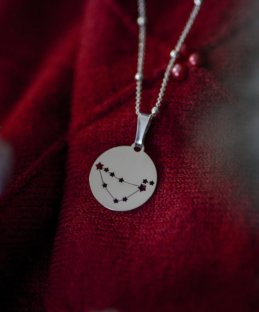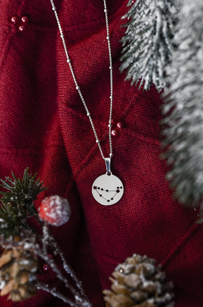 Elegancki naszyjnik zainspirowany konstelacją odpowiadającą wybranemu znakowi zodiaku. Unikalny design skupiający się na detalu i subtelnym pięknie ażurowych gwiazdek, tworzących charakterystyczną konstelację.