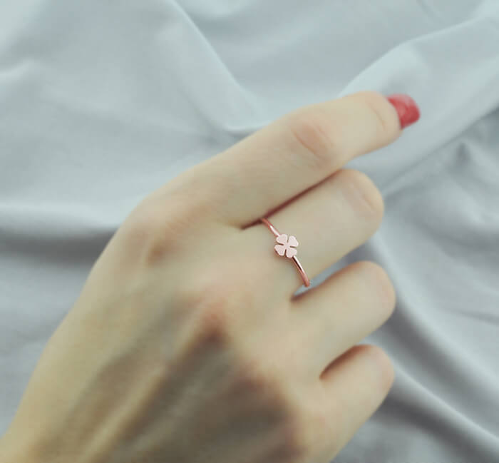 Minimalistyczny pierścionek srebrny Millie - koniczynka