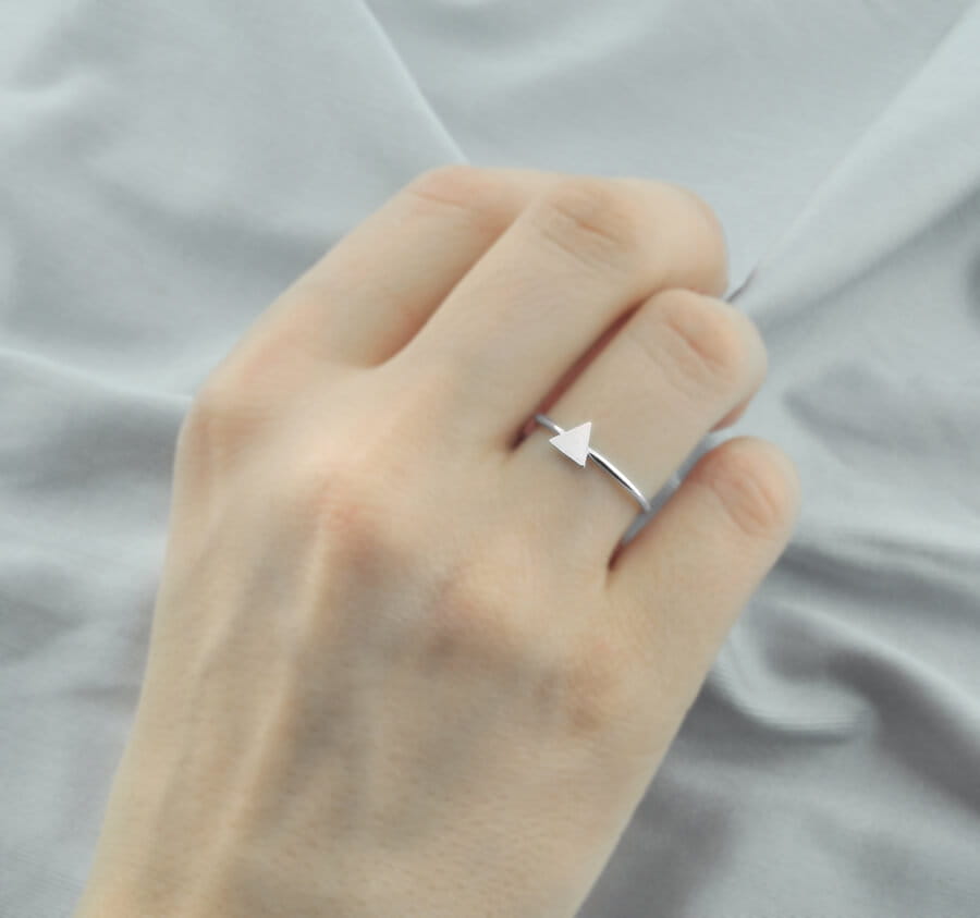 Delikatny i subtelny srebrny pierścionek z trójkącikiem