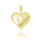 Srebrny wisiorek Alina - serce i stópki z grawerem - 24k złocenie