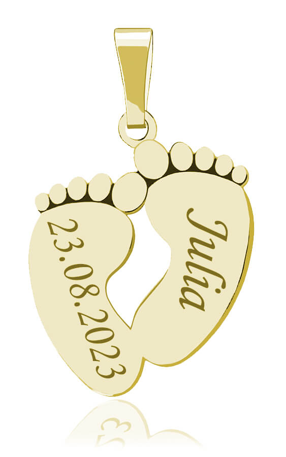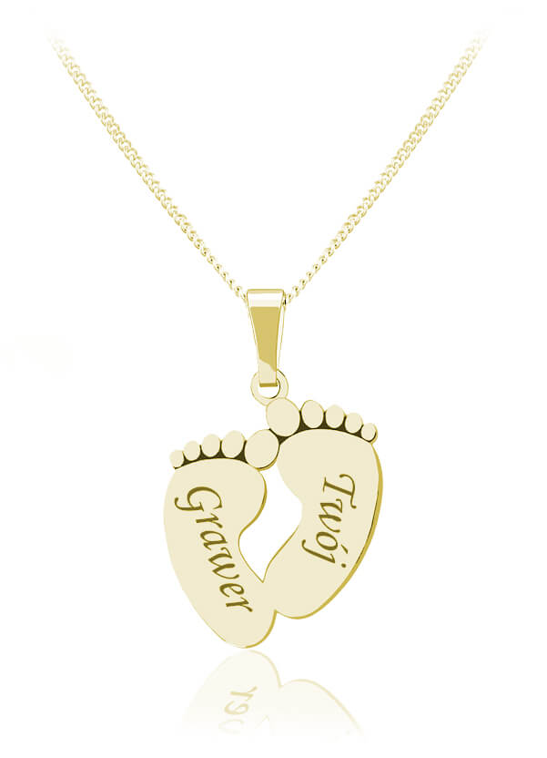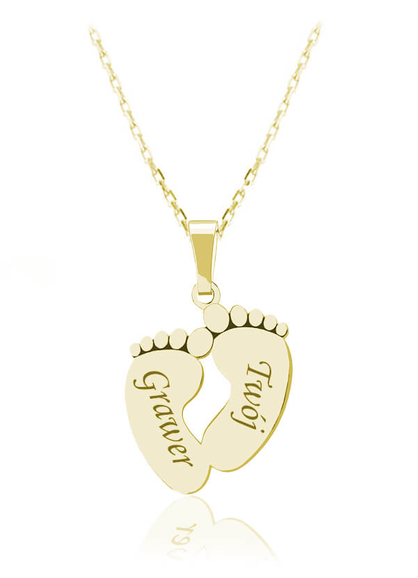 Złoty naszyjnik dziecięce Stópki z Grawerem